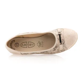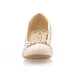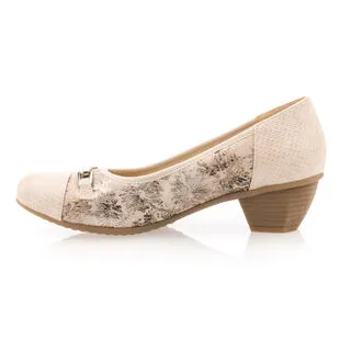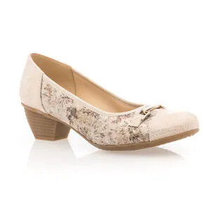 Les chaussures confort de l’été prennent ici la forme d’une ravissante paire d’escarpins beiges à talon de 4 cm. On craque complètement sur leur motif brillant ainsi que sur leur capacité à nous procurer un grand bien-être pendant la marche. Que demander de plus ?