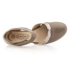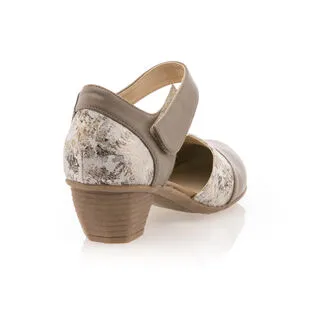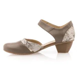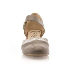 Ces élégantes chaussures confort présentent une tige ouverte, parfaite pour les beaux jours, et un joli talon épais de 4 cm. Elles sont maintenues au tour de cheville à l’aide d’une bride à scratch très pratique. Leur nuance taupe est associée à un délicat motif doré. On les adopte avec plaisir !