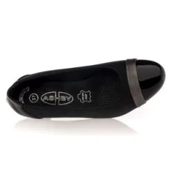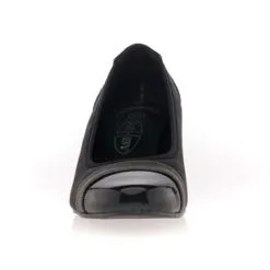 La forme large de ces escarpins à talon permet aux cous-de-pied plus épais d’accéder à un chaussant confortable tout en affichant un style soigné et élégant. Idée look : et si on portait ce modèle avec une robe droite et un cardigan gris ?