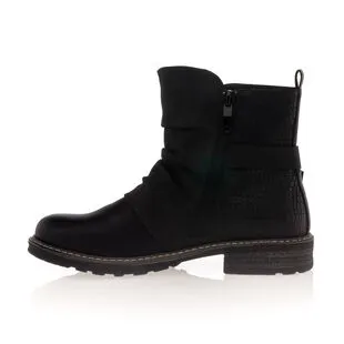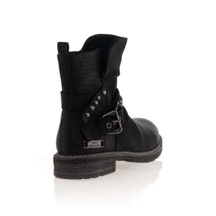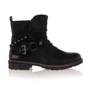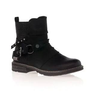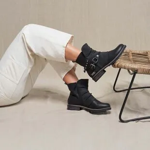 Avec leurs sangles cloutées, leur effet plissé et leur contraste en texture (lisse et écaillée), ces boots noires Best Mountain affirment leur caractère. On utilisera ce modèle ultra stylé aussi bien avec un jean décontracté qu’avec une robe tendance, avec toujours autant de plaisir !