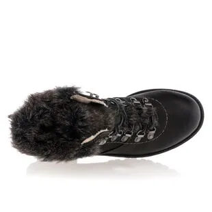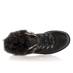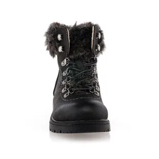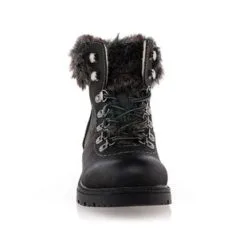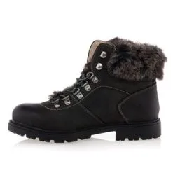 On finalise la tenue du jour dans un style naturel, confortable et chaleureux grâce à ces boots fourrées grises au laçage en crochets façon « chaussures de montagne ». Pour affronter les frimas de l’hiver avec style, on pourrait les porter avec un pantalon slim en velours et un gros pull en laine oversize.