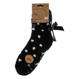 Ces jolies chaussettes noires très douces à semelle antidérapante seront tout simplement idéales pour se mettre dans une ambiance « cosy ». On adore le style fantaisie de ce modèle disponible en lot de 2 paires et agrémenté d’un motif contrastant. Sa composition est à 90% de polyester et à 10% d’élasthanne.