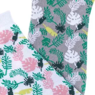 Ces chaussettes courtes blanches et grises sont joliment décorées d’un motif végétal plein de fantaisie et parfait pour les beaux jours. Au-delà de son esthétique ravissante, on aime aussi ce lot de deux paires pour son prix malin et pour la qualité de sa maille composée à 72% de coton, à 26% de polyamide et à 2% d’élasthanne.
