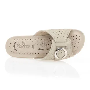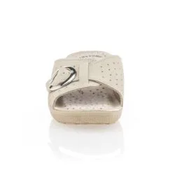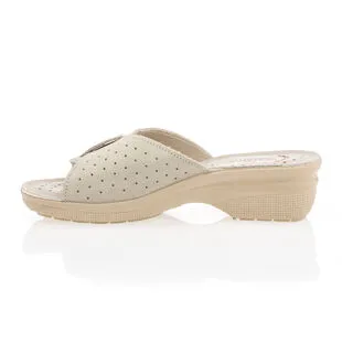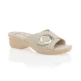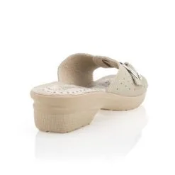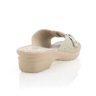 La chaussure confort compensée se met à l’heure d’été avec cette paire de mules en cuir beige au talon haut de 3 cm. Ce modèle allie un style simple et épuré à une très belle qualité. Il sera un nouveau basique précieux pour toutes les femmes souhaitant profiter d’un chaussant 100% bien-être !