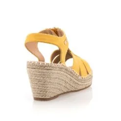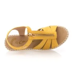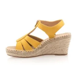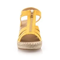 Ces sandales espadrilles jaunes reposent sur une semelle en corde tressée avec un talon compensé de 5 cm. Elles présentent une fermeture éclair sur le cou-de-pied dans un style graphique. Ce modèle au cœur des tendances du moment fait partie de nos chouchous de l’été !