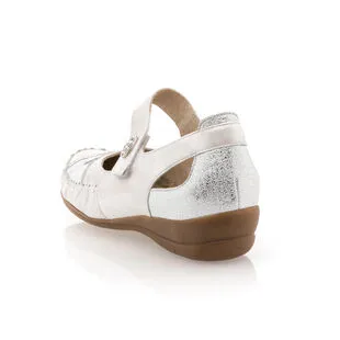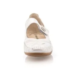 Ces chaussures babies en cuir argenté se fixent sur le cou-de-pied à l’aide d’une jolie bride auto-agrippante. Elles raviront les femmes qui souhaitent profiter d’un style soigné sans faire aucun compromis avec leur confort de marche. On aime quand la mode rend la vie plus belle !