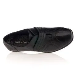 Ces élégantes chaussures confort en cuir noir présentent des lignes sobres et délicates, très faciles à assortir dans des tenues variées. Par exemple avec des collants voile, une robe droite et un trench ? À moins que l’on ne soit plutôt d’humeur pantalon city et tunique ? Laissons parler nos envies mode !