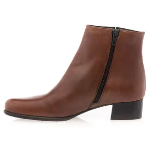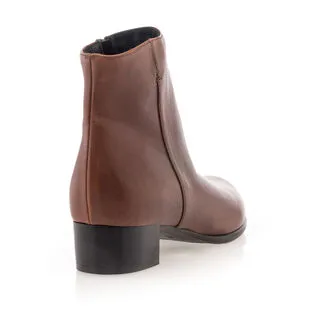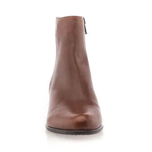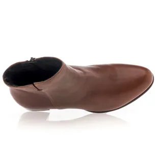 Les lignes sobres et épurées de ces boots en cuir cognac à talon (de 3 cm) inscrivent ce modèle dans un registre élégant au charme intemporel. Très faciles à assortir dans des tenues variées, elles accompagneront nos tenues soignées sans jamais faire de faux-pas !