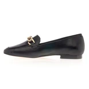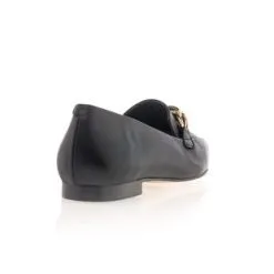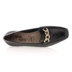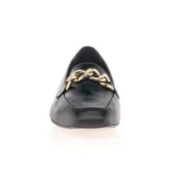 Ces élégants mocassins noirs classiques sont parés d’une chaînette dorée sur leur empeigne. Leur cuir souple de très belle qualité répond aux critères établis par le Leather Working Group. Ce collectif international effectue des audits partout dans le monde avec un objectif : participer efficacement à une filière cuir plus respectueuse de l’environnement.