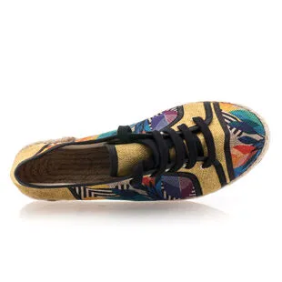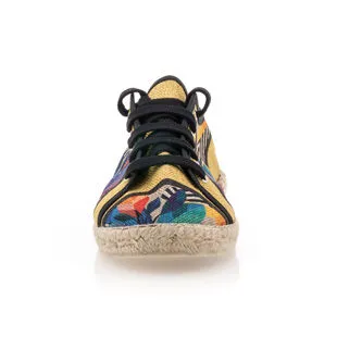 Avec leur motif floral multicolore au style graphique, ces baskets espadrilles revisitent ce basique de l’été dans un esprit décalé et plein de charme. Ce modèle de fabrication française viendra-t-il accompagner une jolie robe légère ou un pantalon en lin et une chemisette beige par exemple ?