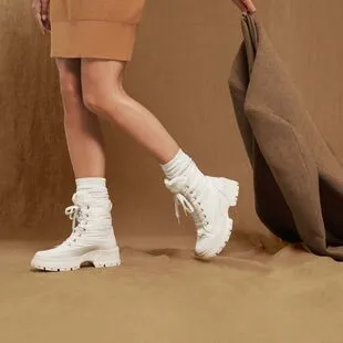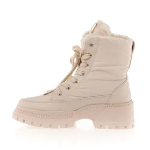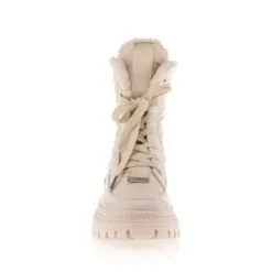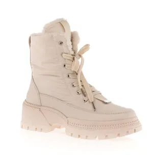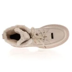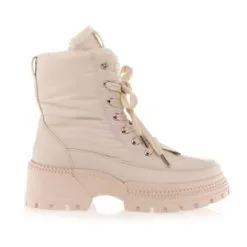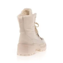 Ces bottines fourrées beiges reposent sur une semelle crantée épaisse de 5 cm au niveau du talon. Inspirées des après-skis, elles nous proposent une version urbaine de ces chaussures de montagne si pratiques et confortables. Un modèle parfait pour garder les pieds bien au chaud tout au long de nos journées actives !