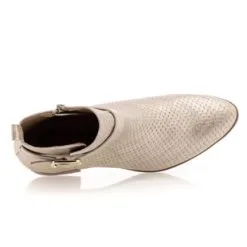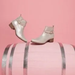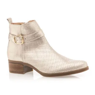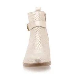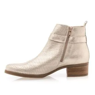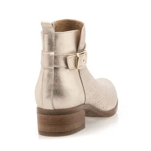 Éblouissantes de charme, ces boots en cuir doré seront la parfaite touche finale de nos tenues les plus stylées ! On adore les finitions soignées de ce modèle de belle qualité, à l’image de son contraste en texture et de sa sangle à boucle brillante.