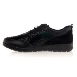Ces très confortables baskets de ville en cuir noir associent un laçage classique à une fermeture zippée très pratique. Elles reposent sur une épaisse semelle crantée assurant une parfaite accroche au sol et un bon soutien de la voûte plantaire. Un nouveau basique qui se rendra vite indispensable !