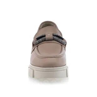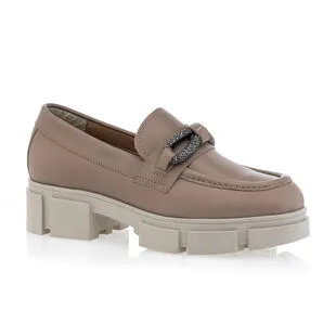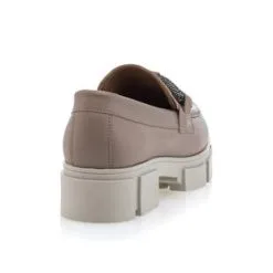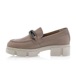 Ces mocassins en cuir taupe chamboulent les codes en associant les lignes classiques de ce basique du vestiaire élégant avec une semelle track surdimensionnée au design tendance et audacieux. On ne résiste pas à cette alliance surprenante pour finaliser la tenue avec style et confort !