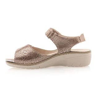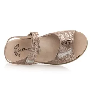 Ces sandales en cuir beige brillant aux deux brides velcro associent un chaussant 100% confort à un style tendance. Idée look : ce modèle au petit talon compensé de 4 cm pourrait par exemple être très sympa à porter avec une jupe évasée grise et un top blanc cache-cœur.