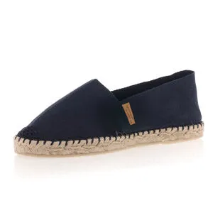 Ces chaussures à semelle de corde bleu marine nous sont proposées par La Maison de l’Espadrille. Elles présentent les lignes caractéristiques de ce type de modèle avec un bout avant en coton brodé. Une jolie création française dont les coutures sont faites à la main.