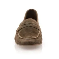 On succombe avec beaucoup de plaisir au charme de cette paire de mocassins en cuir velours kaki (certifié LWG). Avec un jean brut, un pantalon city ou une jupe midi, ces chaussures plates Les Fées de Bengale viendront finaliser la tenue avec confort et élégance.
