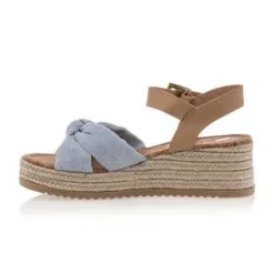 Les sandales espadrilles compensées bleues Mia Love Our Planet nous proposent un style féminin à la fois confortable et plein de charme. Ce modèle a été fabriqué dans le respect des normes environnementales et sociales chères à la marque écoresponsable. On retrouve ainsi des matières premières recyclées comme du liège ou du jute naturel. Ce modèle estival pourrait par exemple joliment trouver sa place dans une tenue composée d’une petite robe bleue à fleurs, d’un collier avec des perles de bois et d’un grand sac cabas à anses souples. En cas de grand beau temps, on n’oublie pas les lunettes de soleil bien sûr !