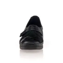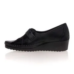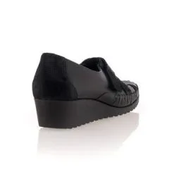 Ces chaussures confort fabriquées en France présentent des lignes modernes dans une très belle qualité. Leur cuir noir est sublimé par des jeux de contrastes en nuances et en textures. On craque aussi sur le charme de leur talon compensé haut de 4 cm.