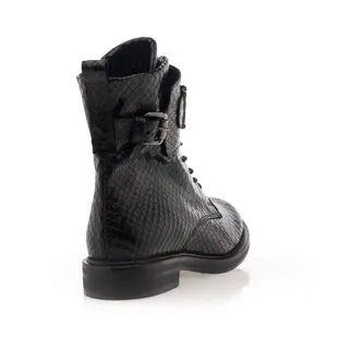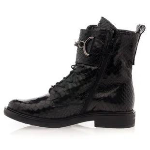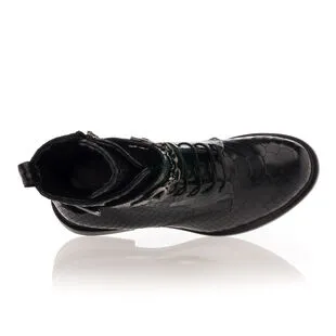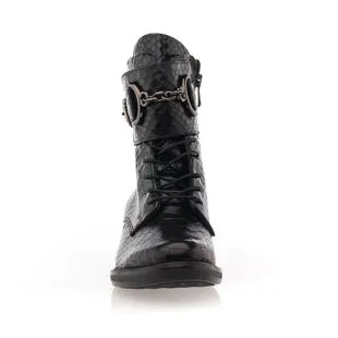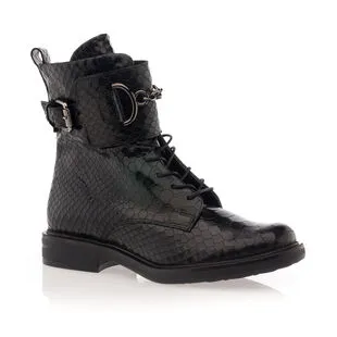 Effet écaillé tendance, large sangle autour de la cheville et détails métallisés : cette paire de bottines Mjus en cuir noir impose son style. Son énergie mode unique, sa qualité haut de gamme et son chaussant protecteur et agréable en feront l’une des pièces phares du vestiaire féminin urbain !