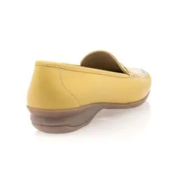 La nuance jaune chaleureuse de ces mocassins en cuir, leur semelle de marche extrêmement confortable, leur empeigne au motif contrastant écaillé et leur excellente durabilité en feront la nouvelle pièce mode fétiche du vestiaire féminin estival. On les adopte avec beaucoup de plaisir !
