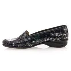 Le mocassin confort en cuir brille de mille feux grâce à cette interprétation originale et pleine de fantaisie chic. En effet, ce modèle au chaussant souple et léger est paré d’un décor « écaillé » iridescent et repose sur un petit talon compensé de 3 cm.