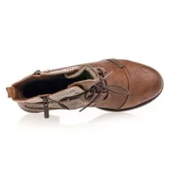 Ces bottines Mustang cognac présentent un motif « pied-de-poule » contrastant dans des lignes décontractées. Elles nous chausseront avec style et confort pour accompagner des looks variés. Avec un jean délavé, un pull beige ou marron à fines mailles et un blouson de cuir par exemple ?