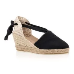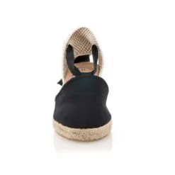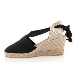 Ces sandales espadrilles se composent d’une semelle en corde tressée avec un talon haut de 6 cm, d’une toile noire unie, d’un contrefort beige et d’un laçage ruban. Le résultat ? Un modèle plein de charme, parfait pour finaliser une tenue casual chic !