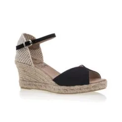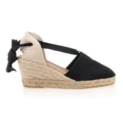 Ces sandales espadrilles se composent d’une semelle en corde tressée avec un talon haut de 6 cm, d’une toile noire unie, d’un contrefort beige et d’un laçage ruban. Le résultat ? Un modèle plein de charme, parfait pour finaliser une tenue casual chic !