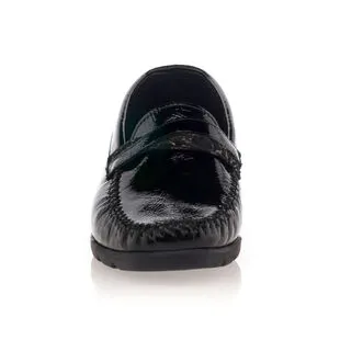 Le mocassin classique en cuir noir ne cesse de nous séduire par son charme, son confort et sa sophistication. Avec ses lignes élégantes et son exceptionnelle qualité de chaussant, ce modèle ne déroge pas à la règle. Détail mode : on adore la petite bande au motif « serpent » joliment positionnée sur l’empeigne.