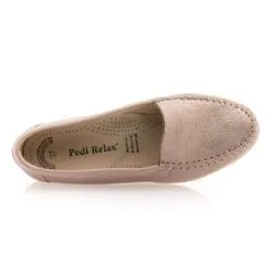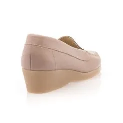 Ces ravissants mocassins en cuir rose de très belle qualité reposent sur une semelle compensée crantée au talon haut de 4 cm. Ils offriront un chaussant particulièrement confortable et un parfait soutien à la voûte plantaire durant la marche et les stations debout prolongées. On aime cette alliance du style et du bien-être !