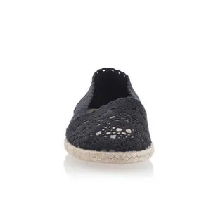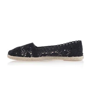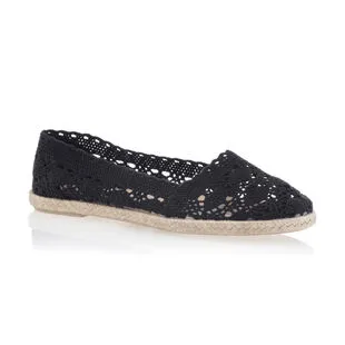 Tout simplement parfaites pour la belle saison, ces espadrilles noires plates sont un vrai petit trésor de charme et de confort. Si on retrouve la typique semelle en corde tressée de ce modèle incontournable de l’été, cette version arbore une tige façon « crochet » qui lui donne un cachet unique !