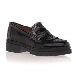 Ces mocassins en cuir velours kaki (certifié LWG pour son mode de fabrication écologique) reposent sur une petite semelle compensée blanche épaisse de 3 cm. Leur empeigne arbore une bande transversale au motif brillant contrastant. Aussi stylé que confortable, ce modèle a tout d’un nouveau basique !