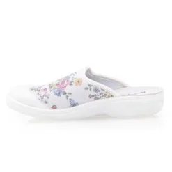 Le design de ces chaussures confort blanches au bout renforcé s’inspire de la mule estivale. Elles reposent sur une semelle de marche légèrement compensée qui assurera un amorti très agréable à chaque pas. Elles sont décorées d’un motif « fleurs et papillons » multicolores au charme rafraichissant. On les adore !