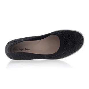 On allie un style soigné ravissant et un chaussant extrêmement confortable grâce à cette paire de ballerines noires Tango and Friends. Leur tige en maille textile noire extensible est mise en valeur par des fils dorés tandis que leur semelle de marche dispose d’un talon compensé de 4 cm parfaitement stable et équilibré.
