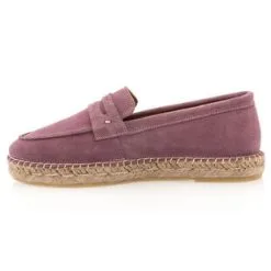 À mi-chemin entre les mocassins et les espadrilles, ces chaussures en cuir velours parme et à la semelle en corde tressée risquent bien de devenir notre modèle chouchou de la belle saison ! On aura un plaisir fou à profiter de leur confort en les mixant avec des tenues variées.