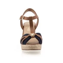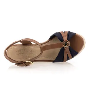 Ces élégantes sandales espadrilles Tom Tailor reposent sur une semelle en corde tressée dont le talon s’élève à 9 cm. Leur large bride transversale avant est joliment texturée par de fines lanières cognac. Un modèle qui provoquera des coups de foudre en série chez les fashionistas !