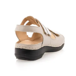 Parmi les nombreuses tenues que cette paire de sandales en cuir beige pourrait finaliser, on se tournerait bien vers une esthétique boho. Pour cela, on peut par exemple opter pour un pantalon carotte laissant les chevilles apparentes, un top dos nu et un sac besace bien souple porté en bandoulière.