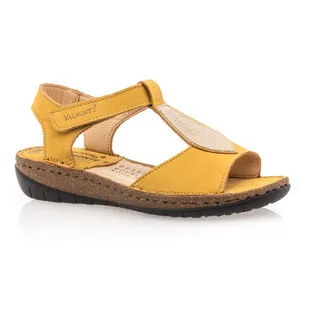 Ces sandales en cuir jaune reposent sur une semelle multi-matières assurant une très agréable qualité de chaussant. On aime le style naturel de ce modèle qui pourrait se révéler très sympa à intégrer dans une tenue boho. Avec une maxi jupe beige et un top à fines bretelles par exemple ?