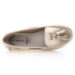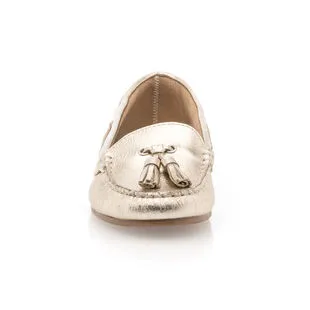 Ces chaussures bateau en cuir doré allient des lignes classiques à une nuance étincelante. On adore le laçage qui parcourt leur encolure ainsi que le joli petit pompon frangé qui agrémente leur empeigne. Un modèle qui se fait une place d’honneur dans notre shoesing de saison !