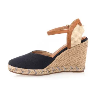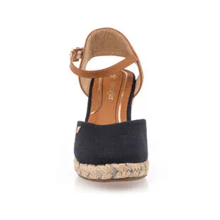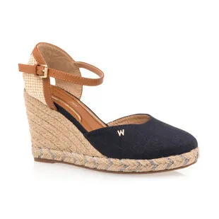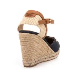 Cette paire de sandales espadrilles bleu marine signée Wrangler repose sur une semelle en corde tressée au talon haut de 9 cm parfaitement stable et équilibré. Plus besoin de maîtriser l’art du stiletto pour créer une silhouette vertigineuse et la sensation de jambes interminables !